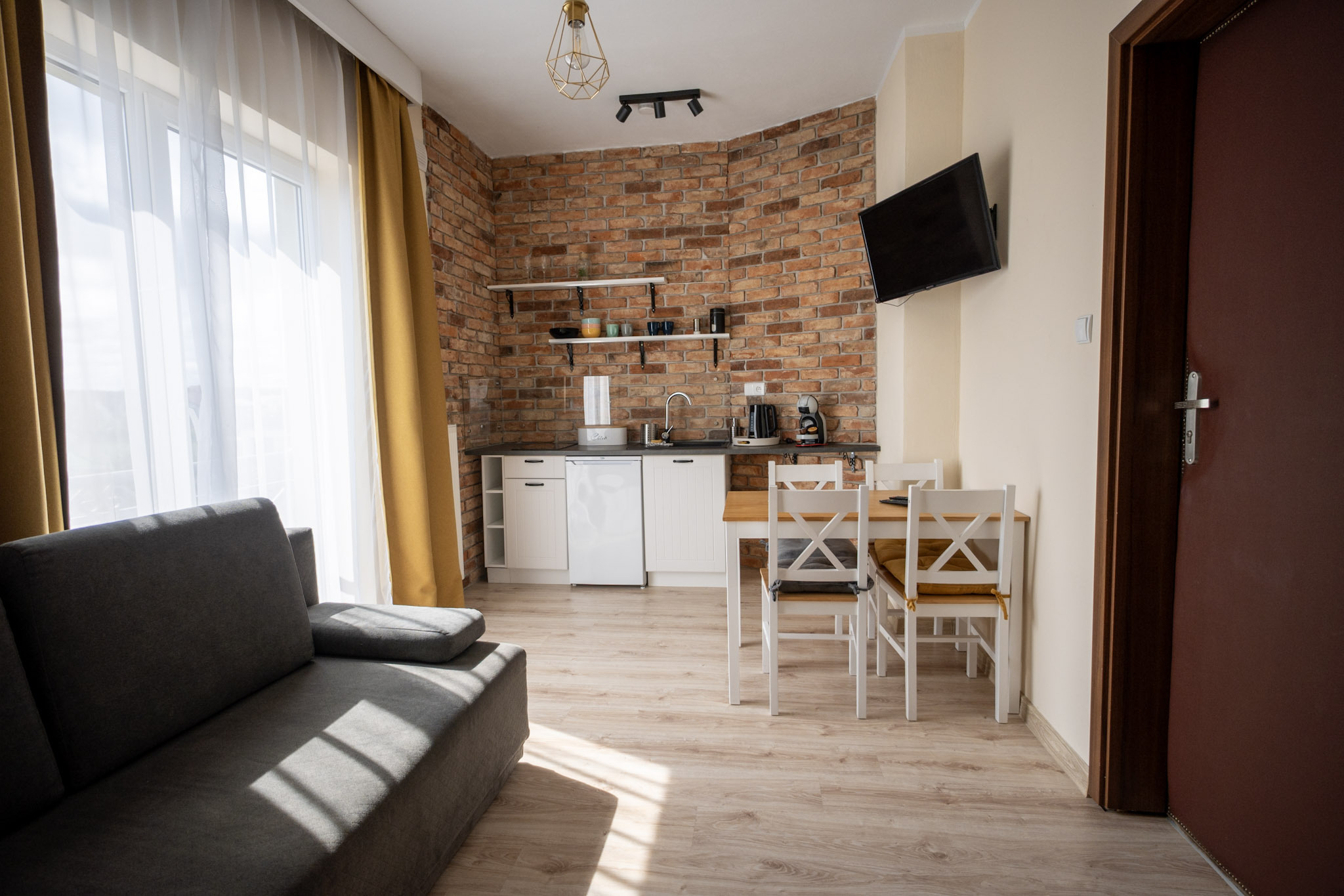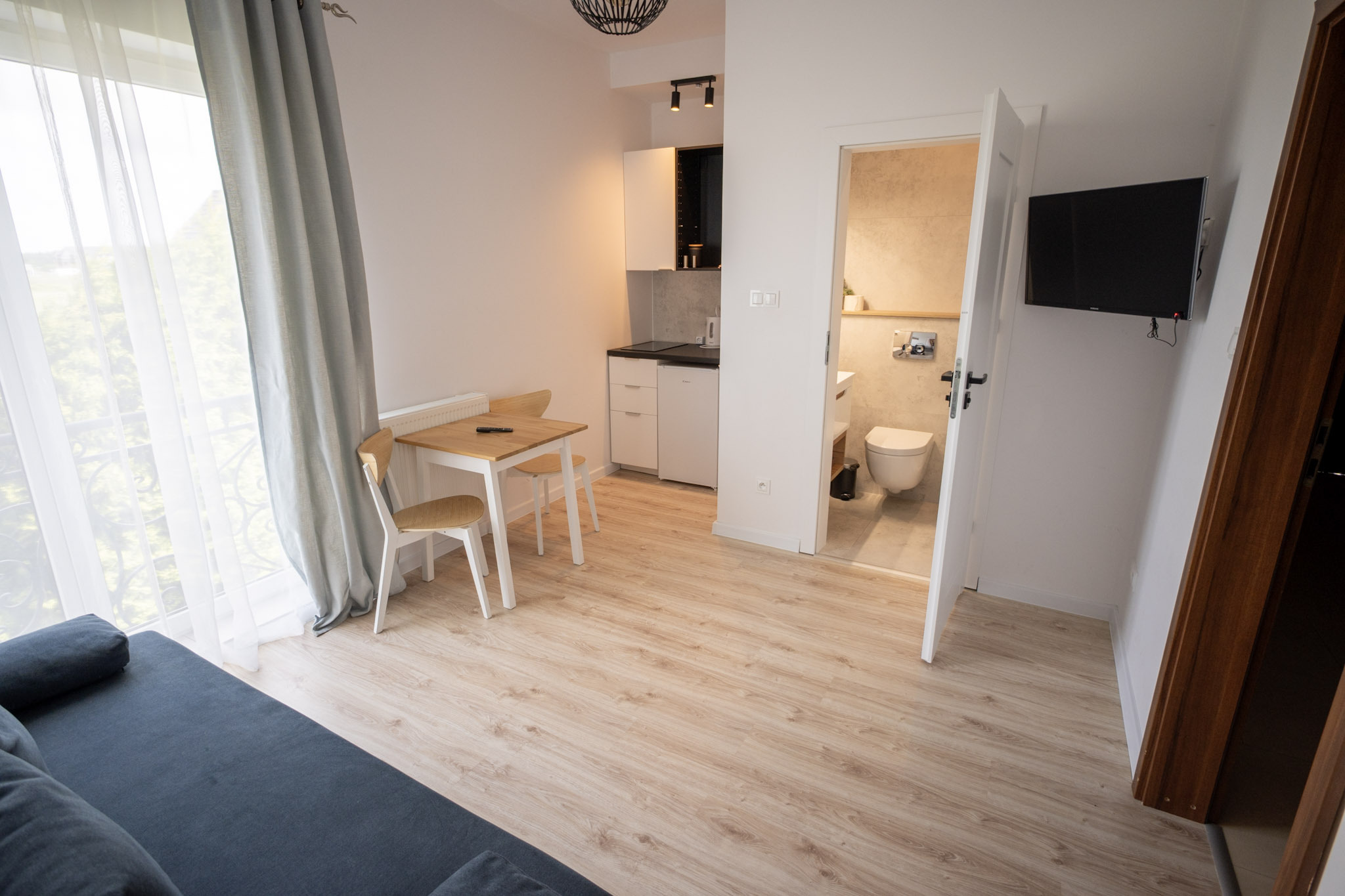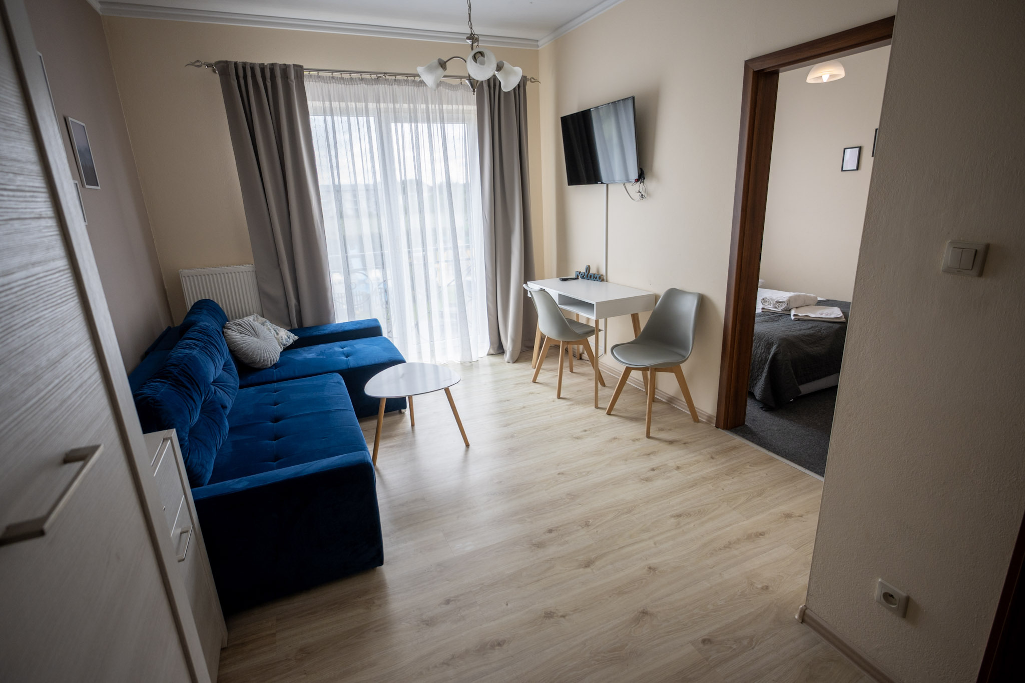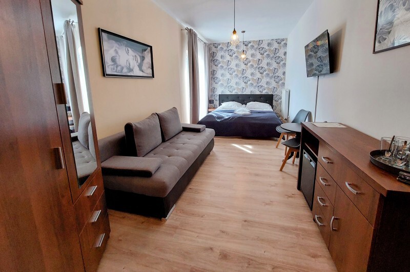 Apartament z jedną sypialnią oraz salonem z aneksem kuchennym. Apartament posiada rozkładaną kanapę dwuosobową w salonie i może pomieścić 4 osoby.