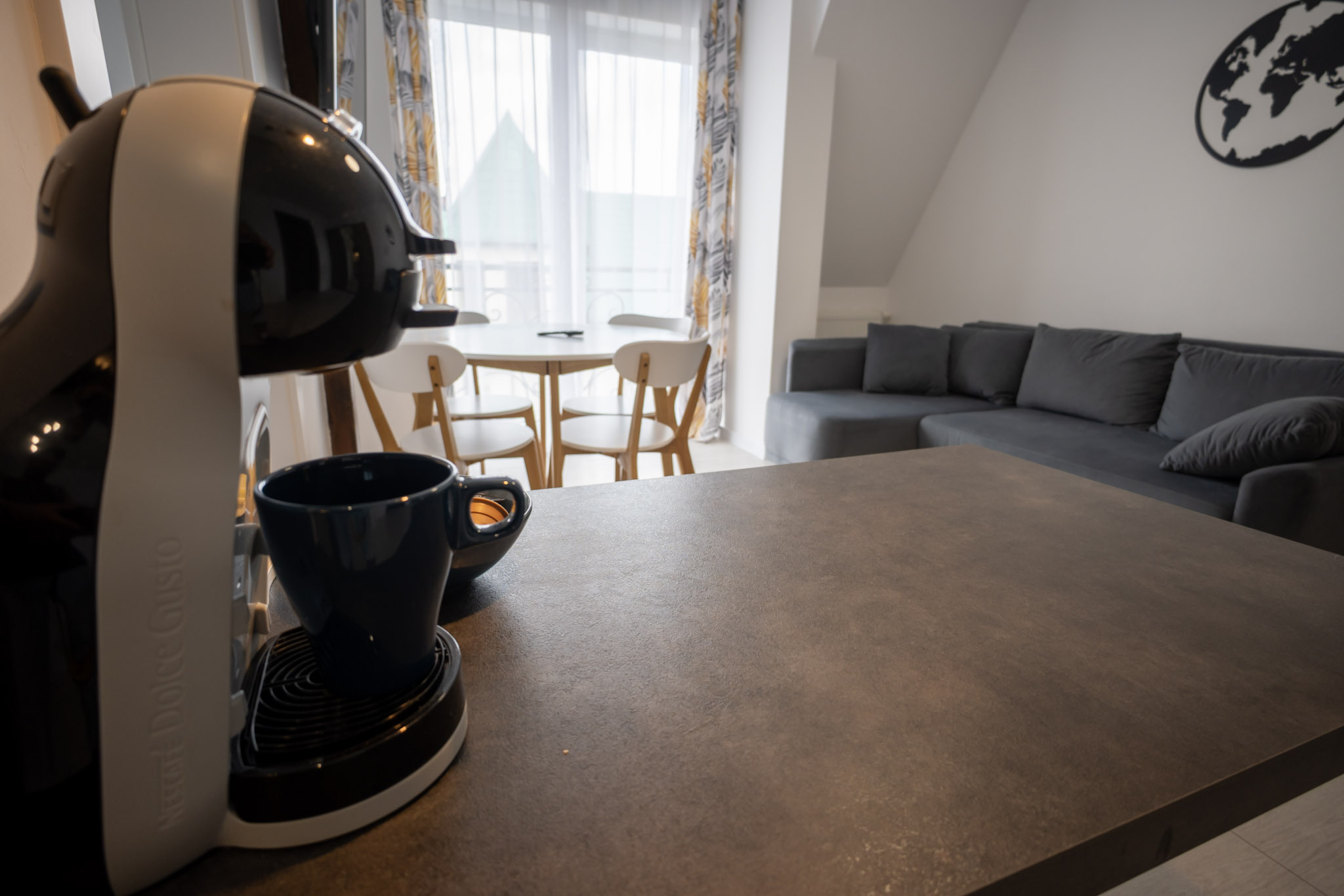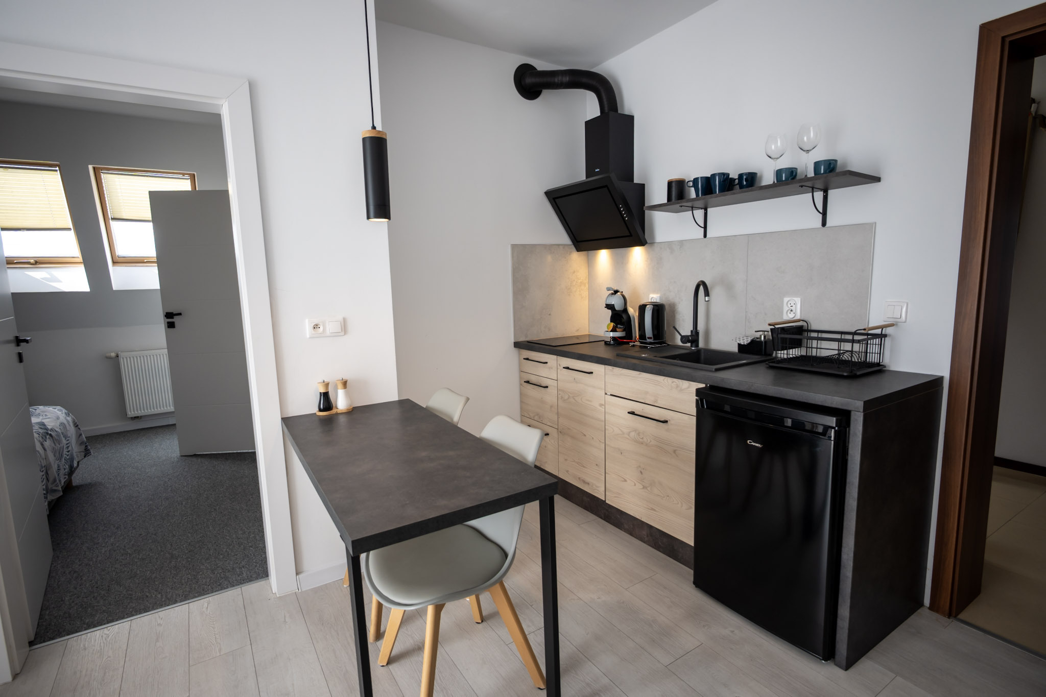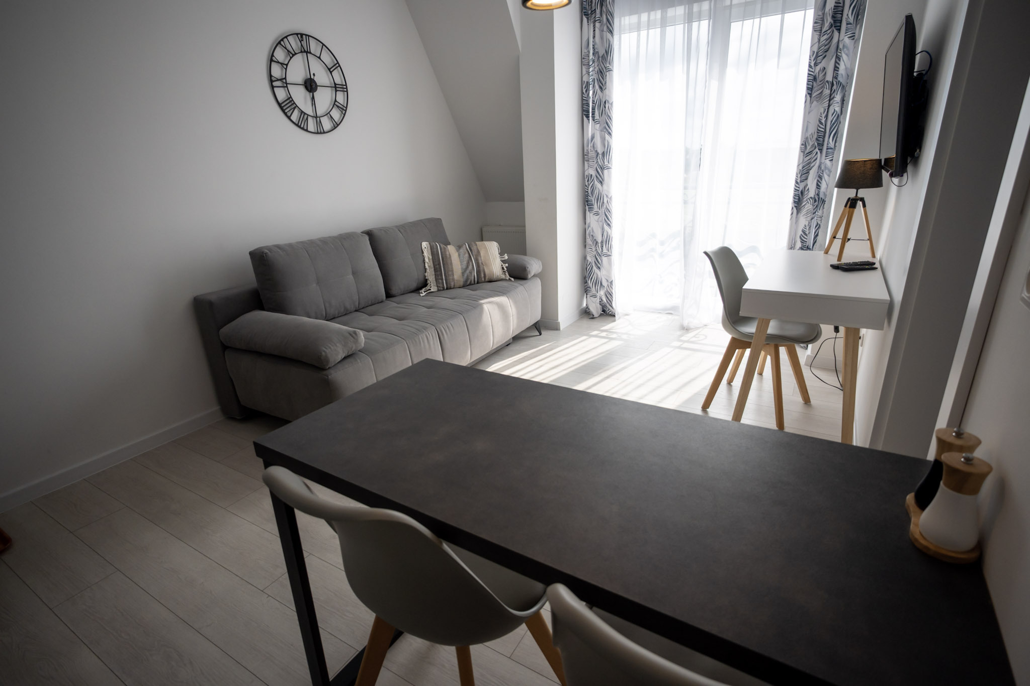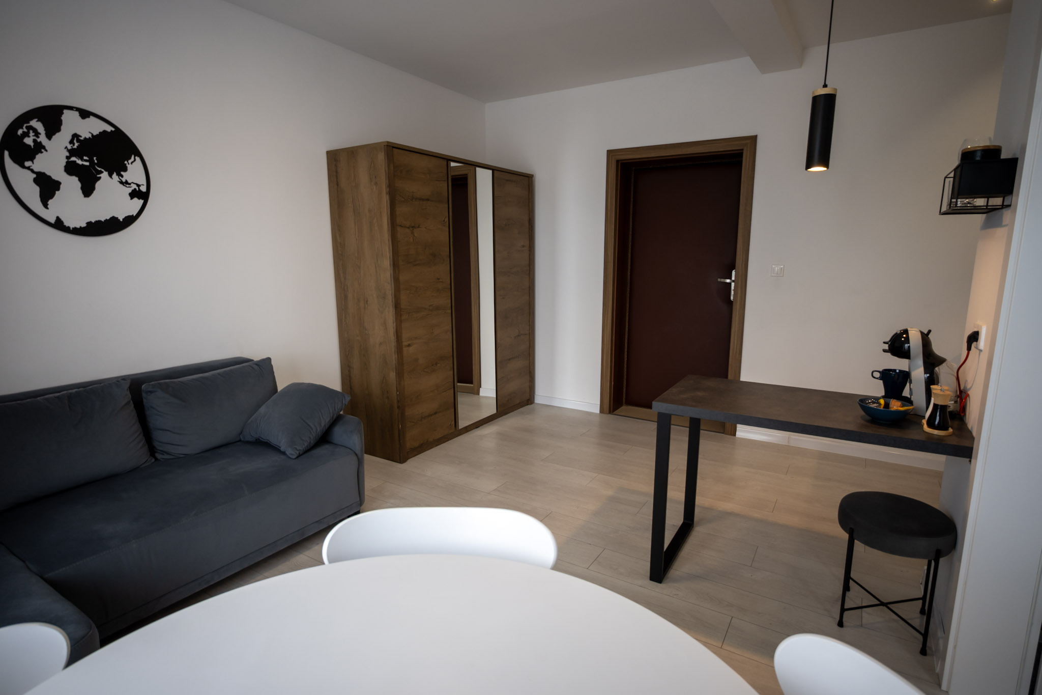 Apartament z jedną sypialnią oraz salonem z aneksem kuchennym. Apartament posiada rozkładaną kanapę dwuosobową w salonie i może pomieścić 4 osoby.