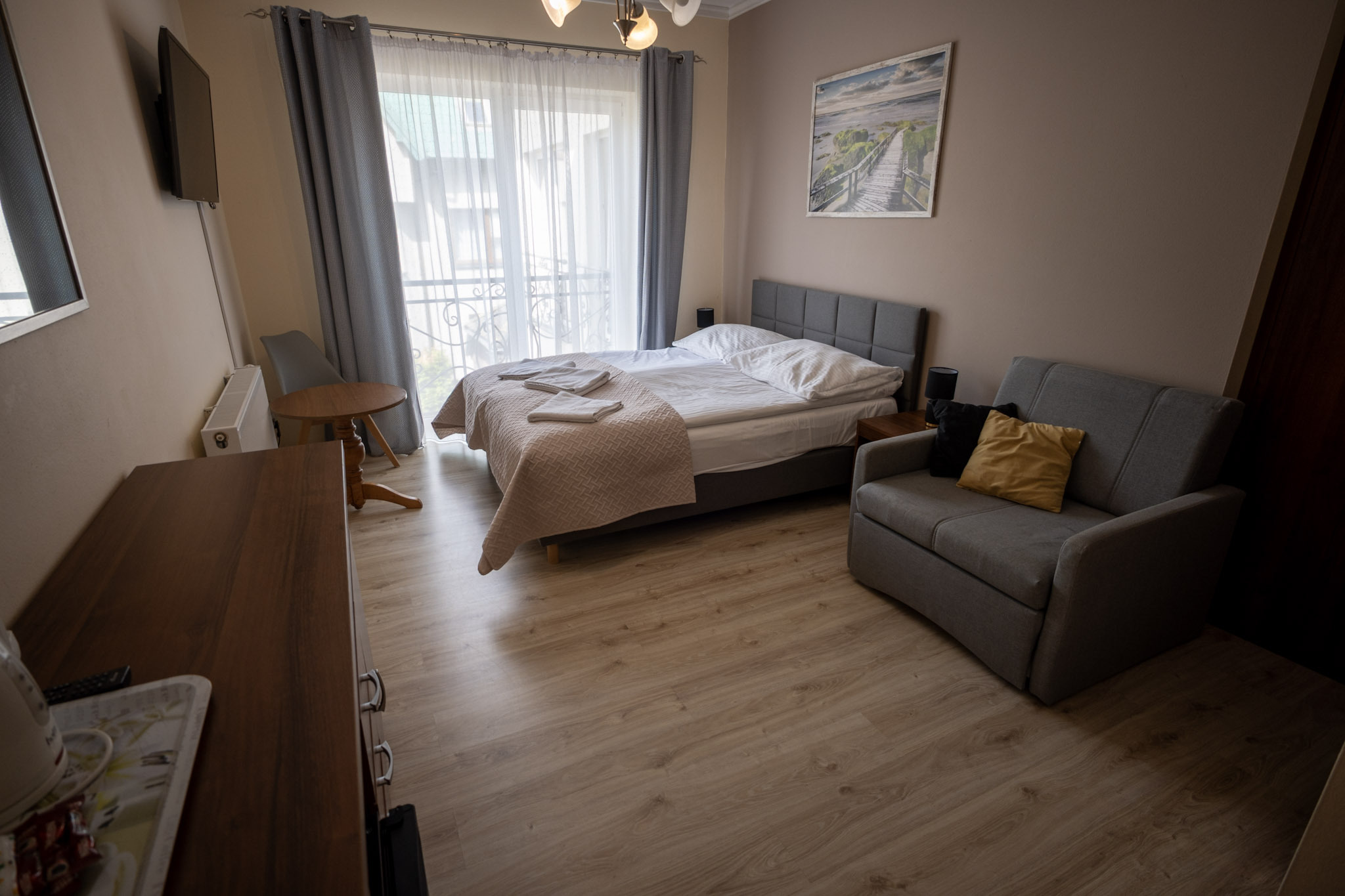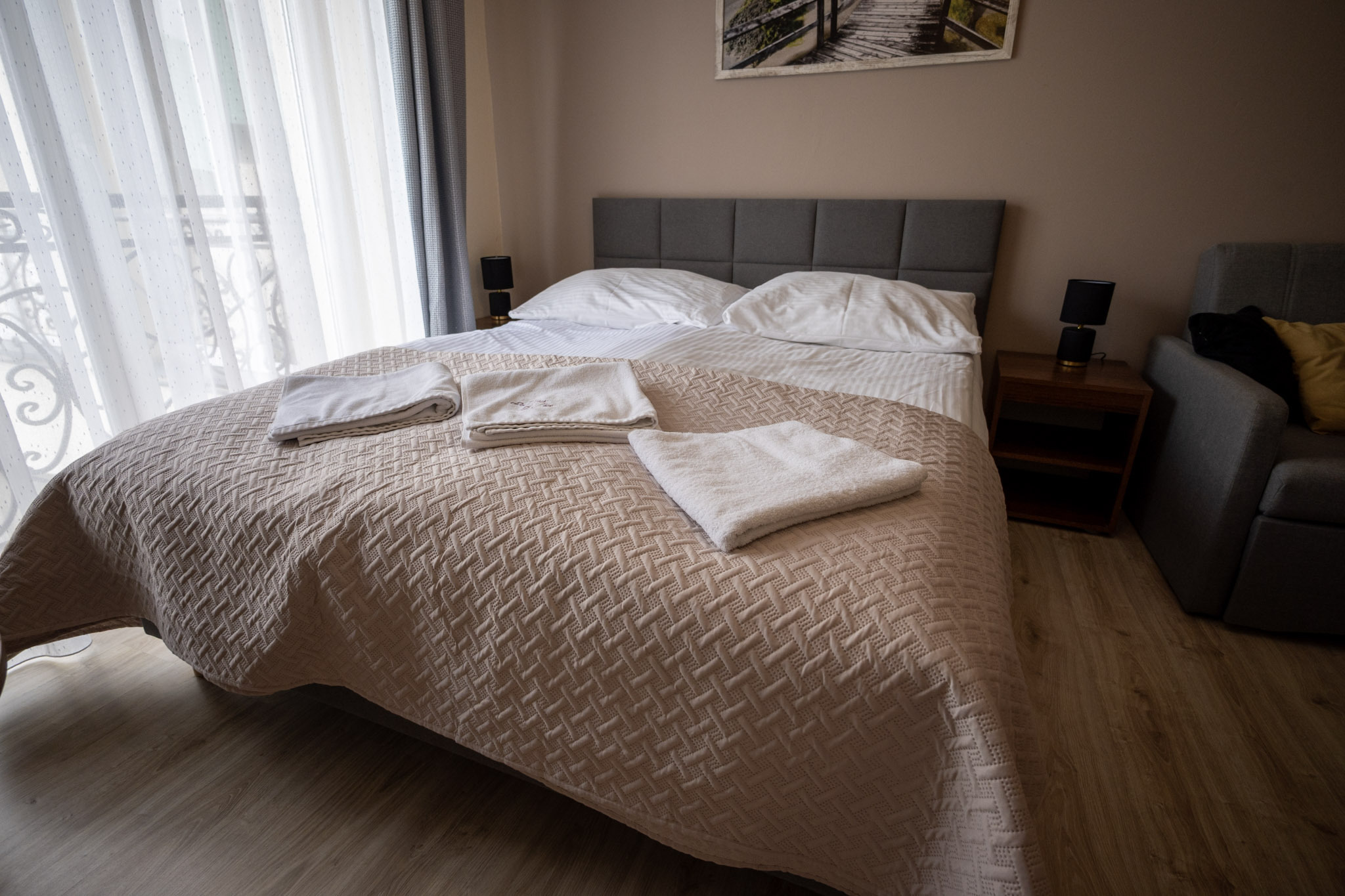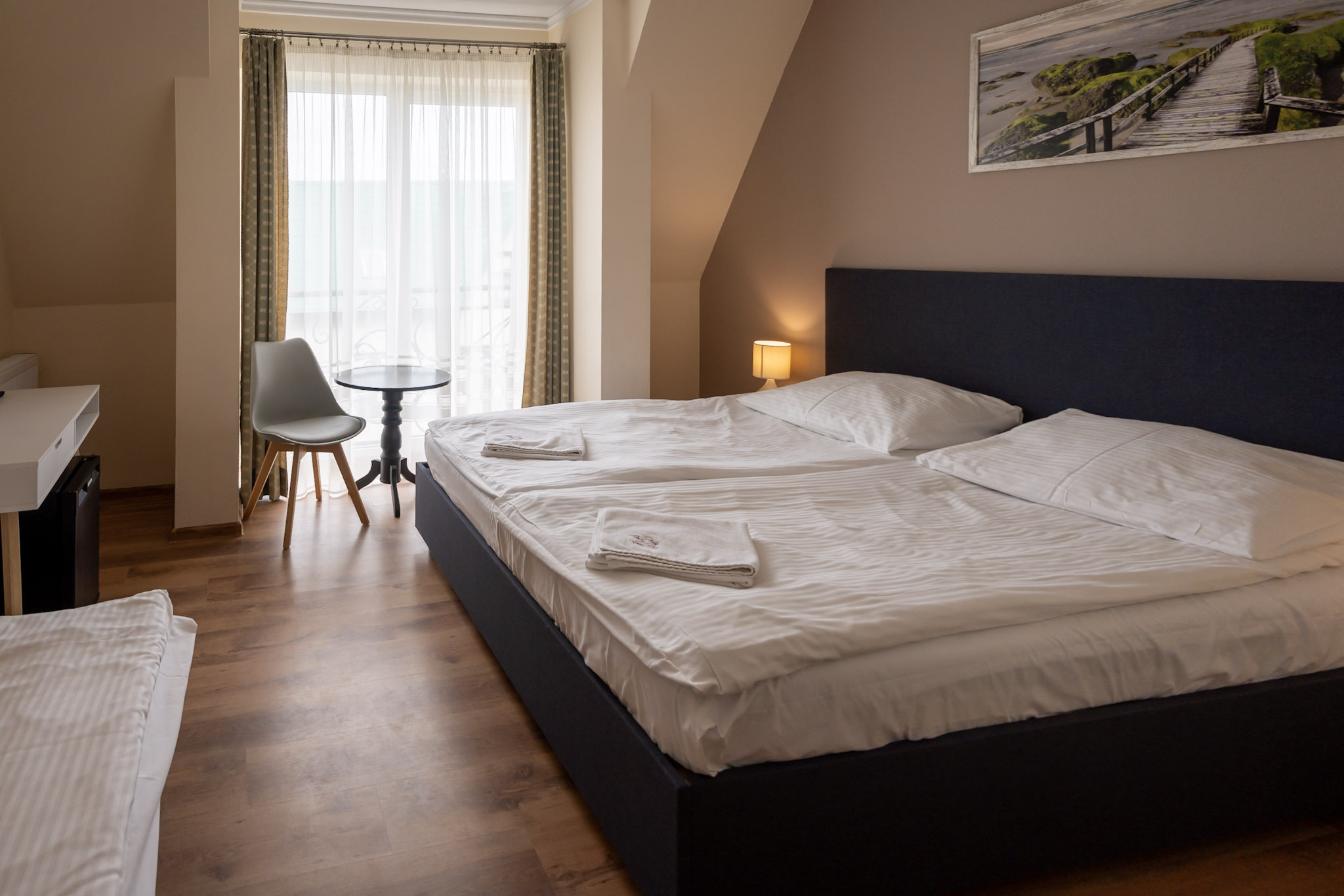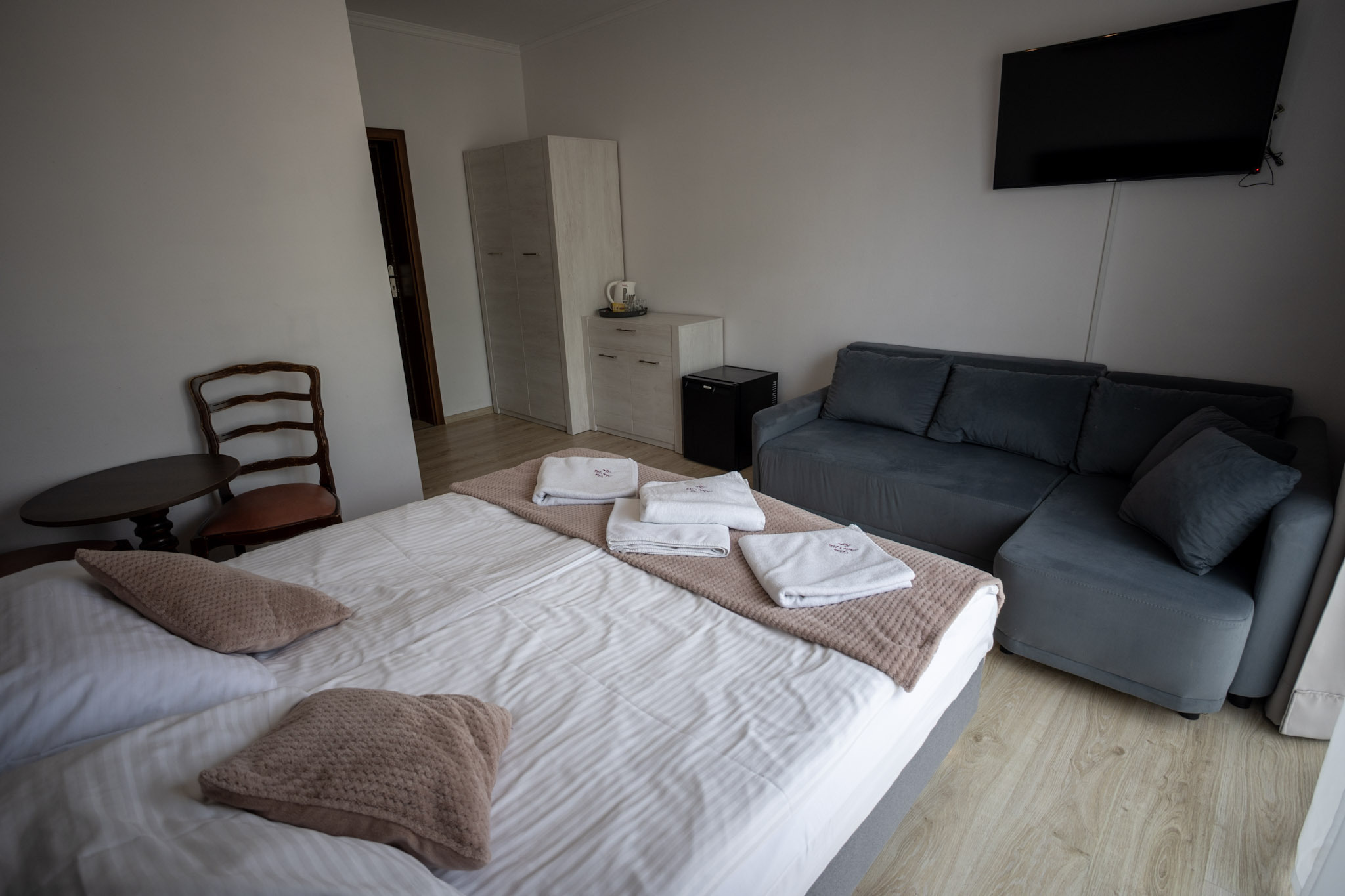 Pokój typu Superior - jest bardziej przestronny, może pomieścić 4-osobową rodzinę. Oprócz dużego łóżka małżeńskiego typu King Size, posiada także rozkładaną dwuosobową kanapę.