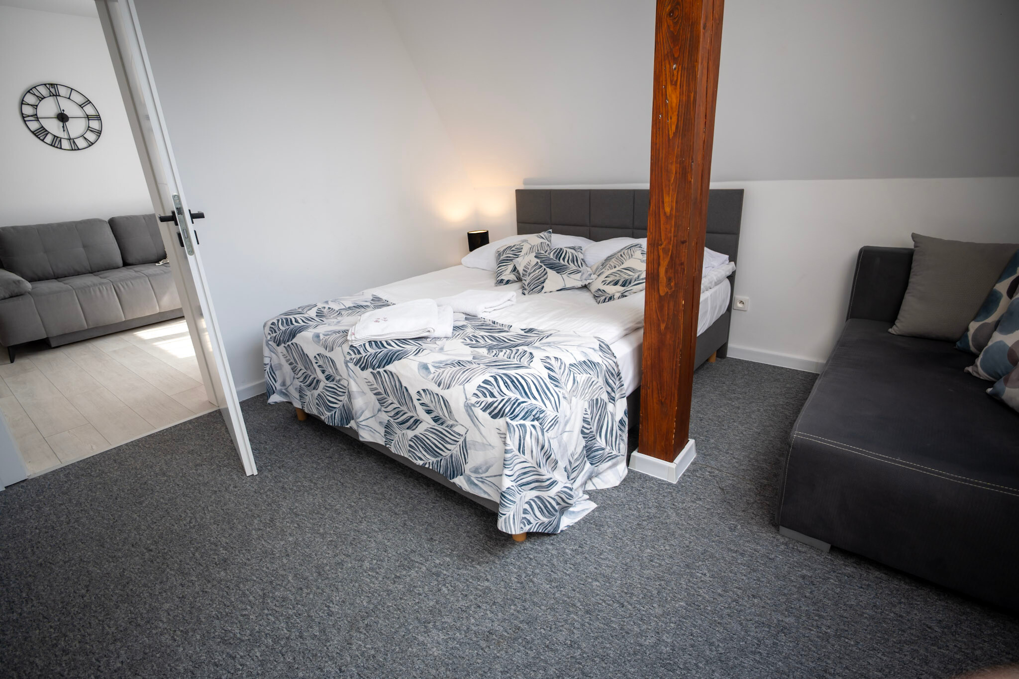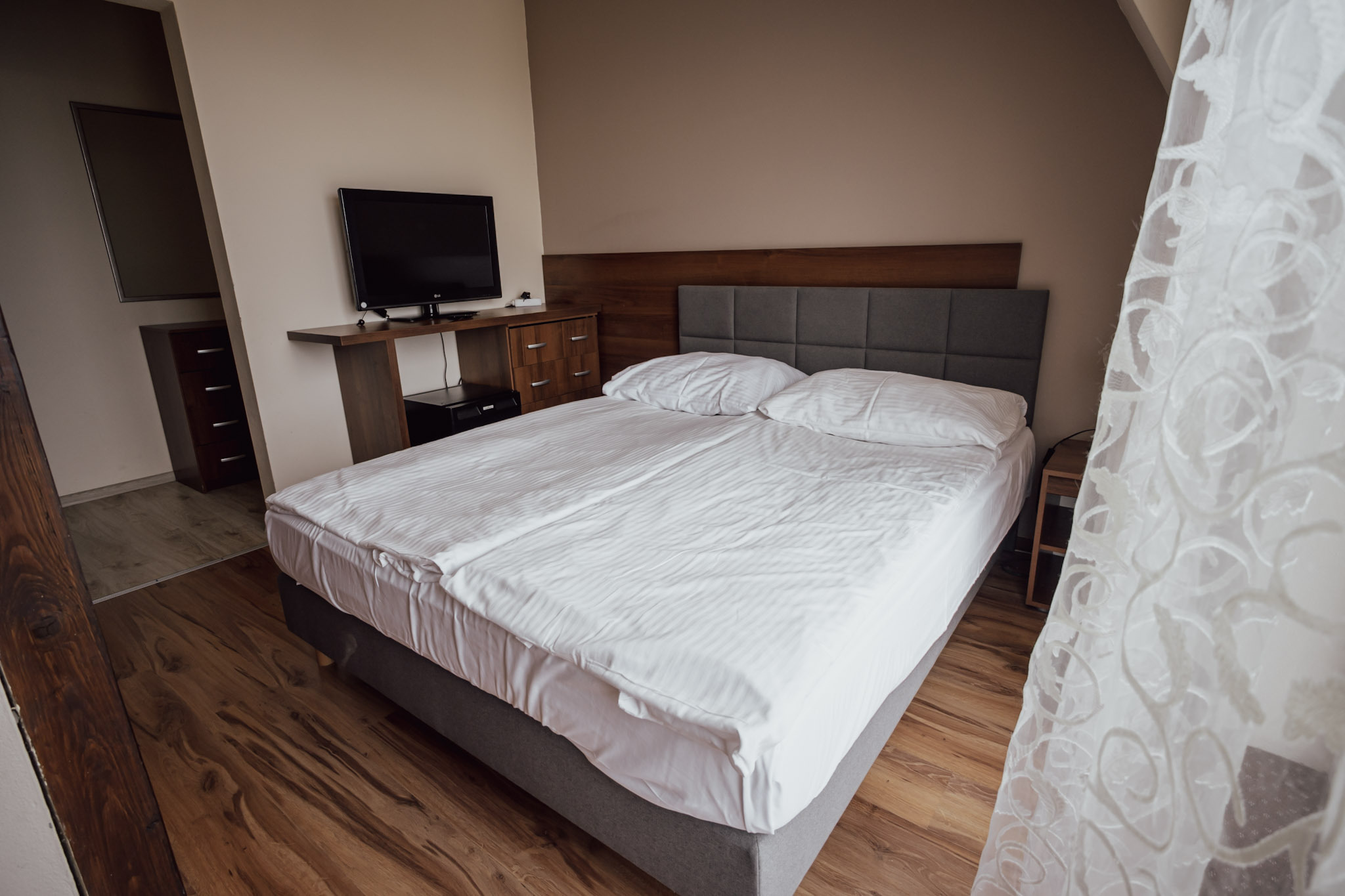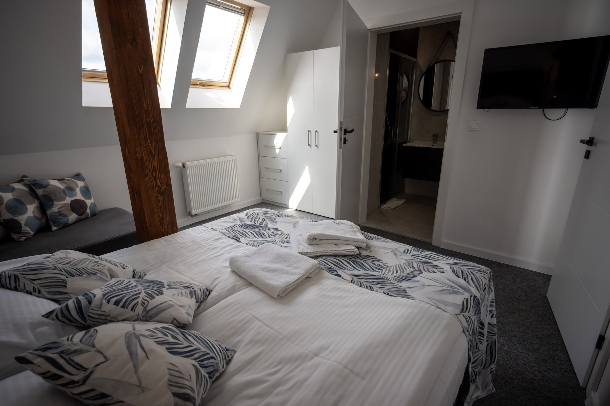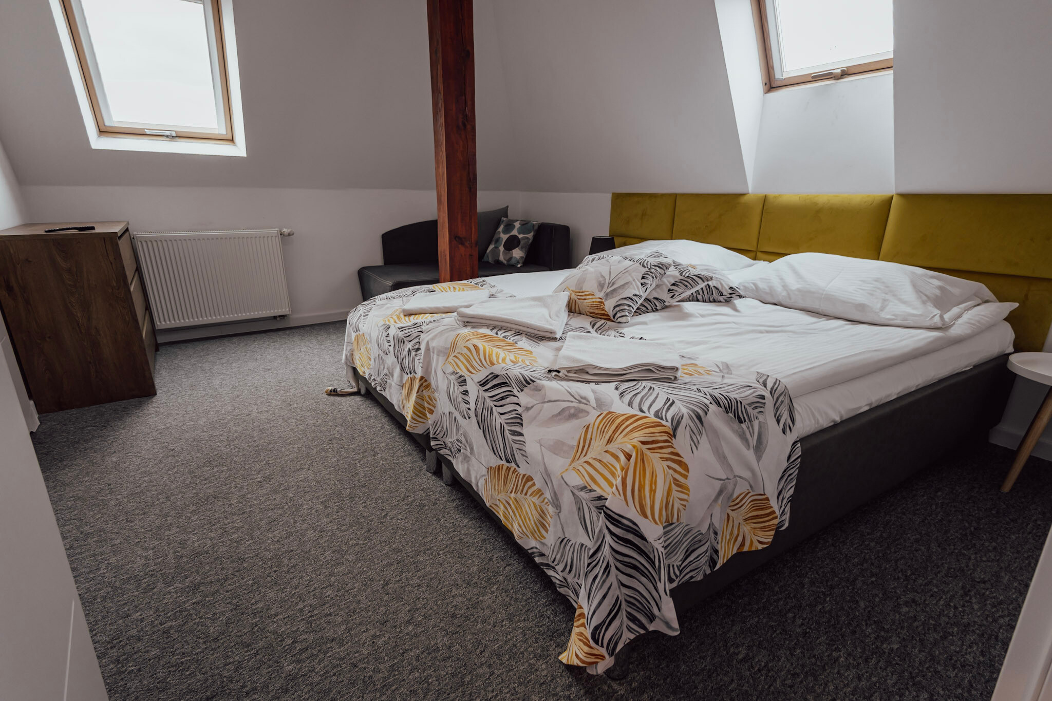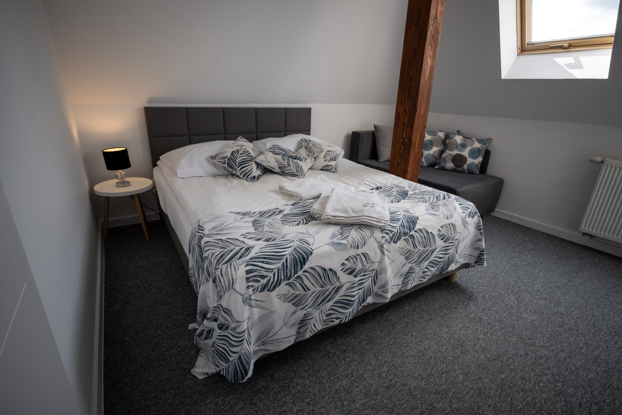 Pokój typu Superior - jest bardziej przestronny, może pomieścić 4-osobową rodzinę. Oprócz dużego łóżka małżeńskiego typu King Size, posiada także rozkładaną dwuosobową kanapę.