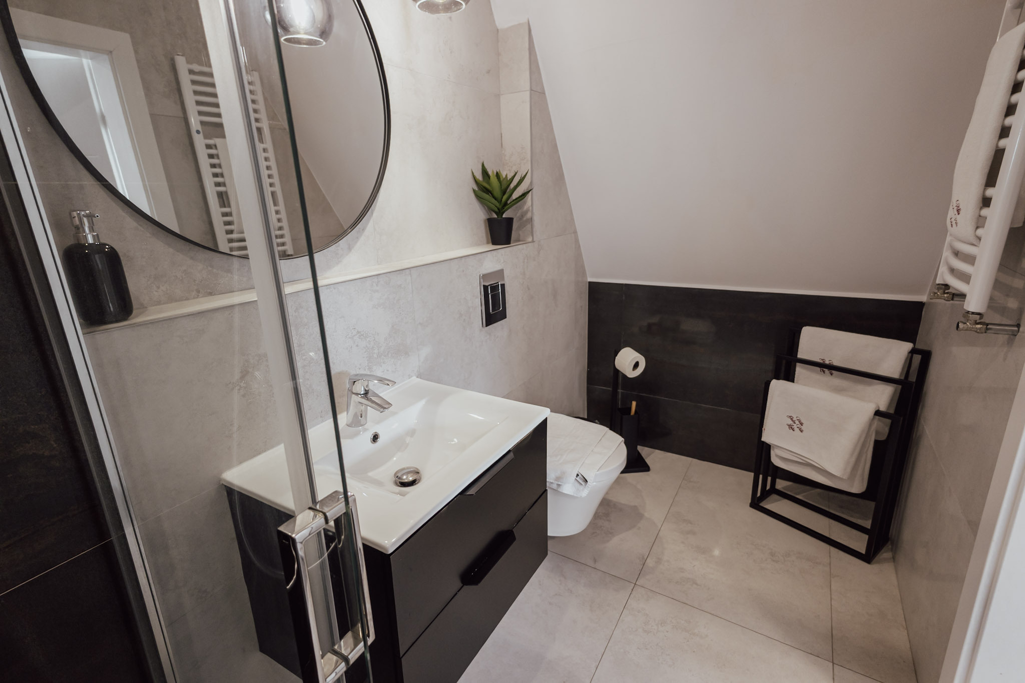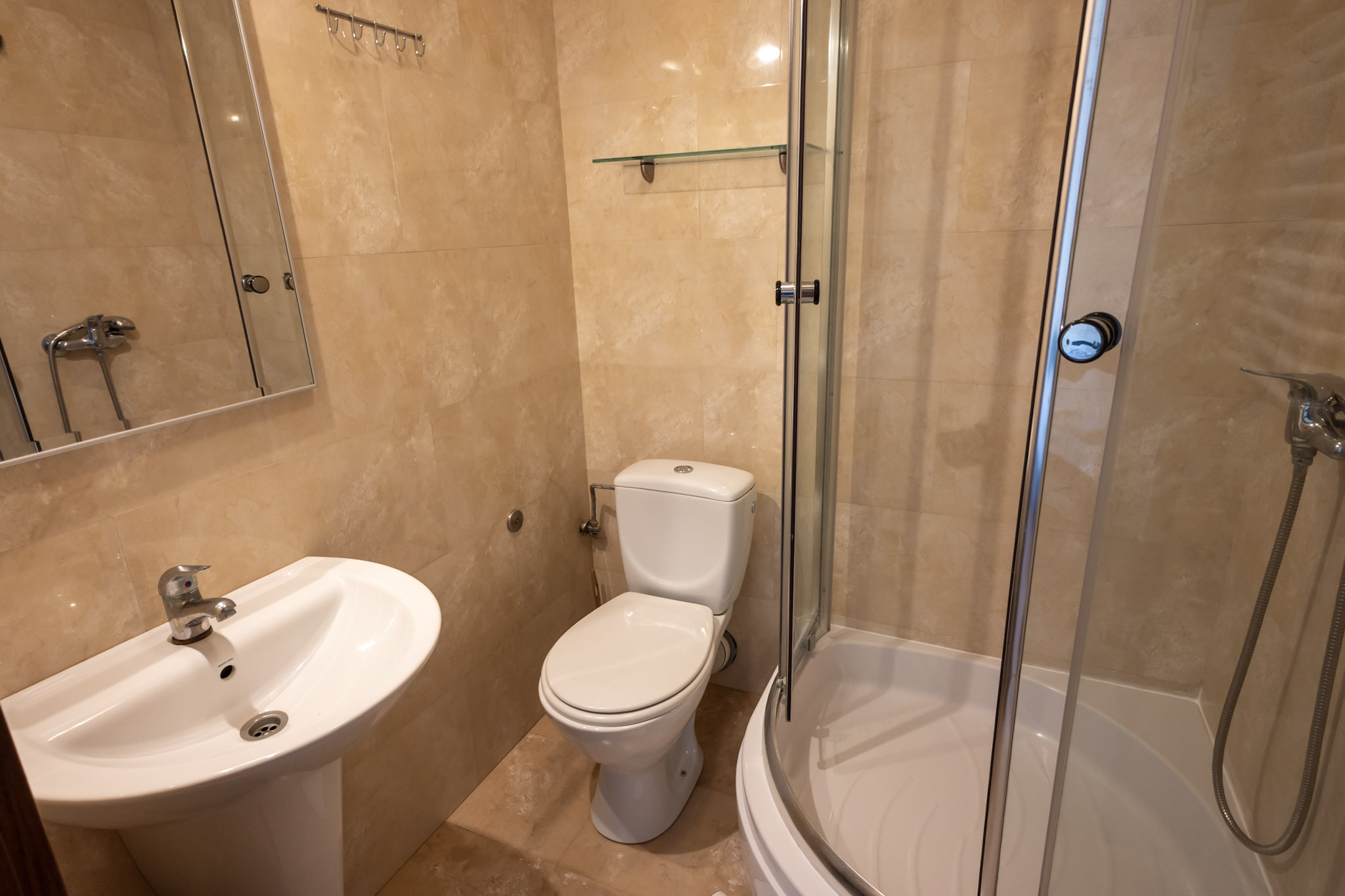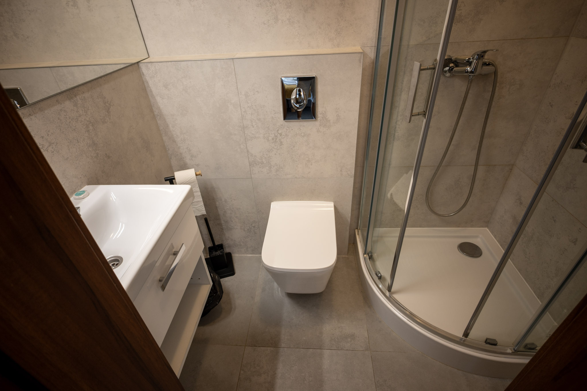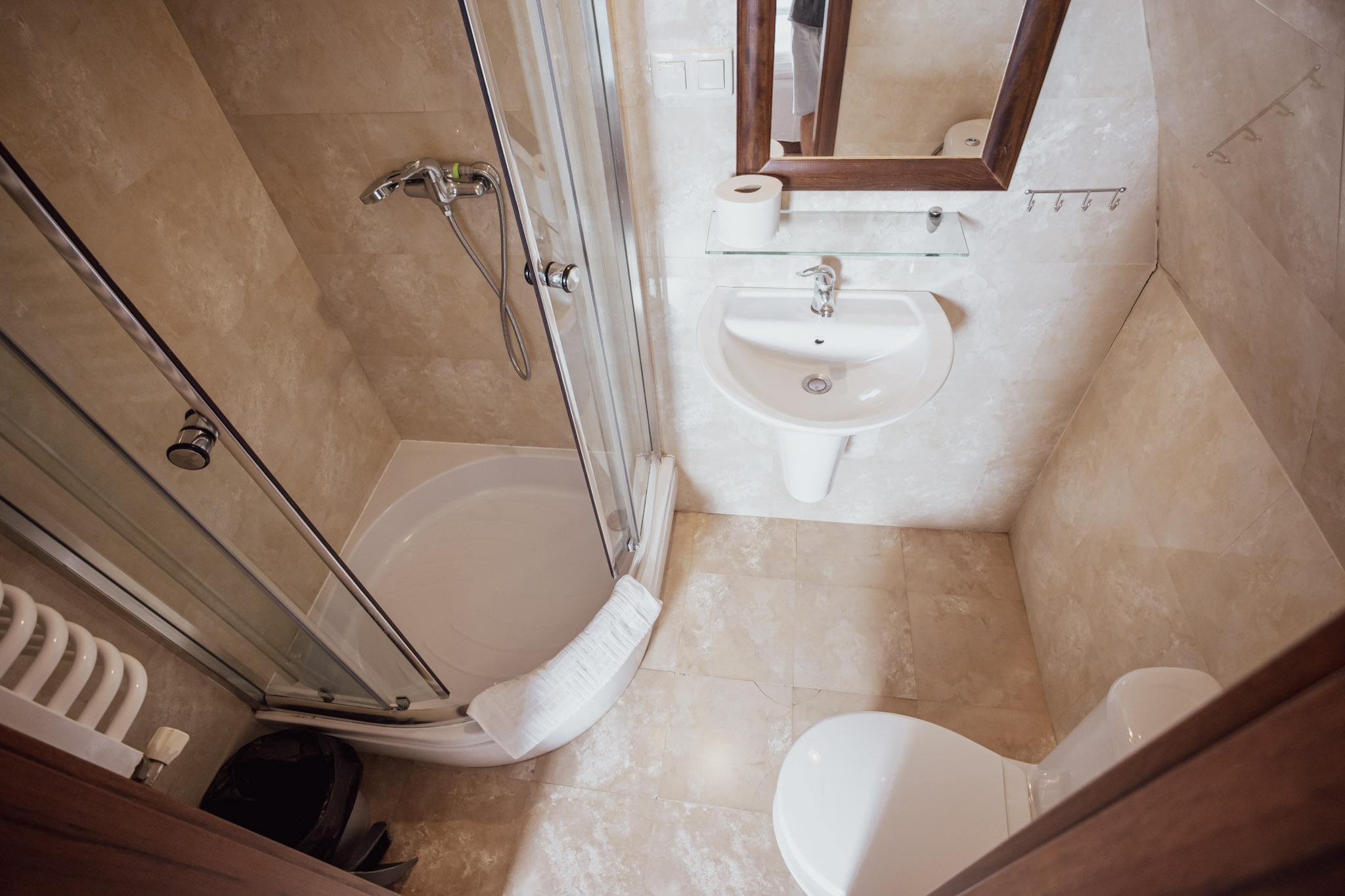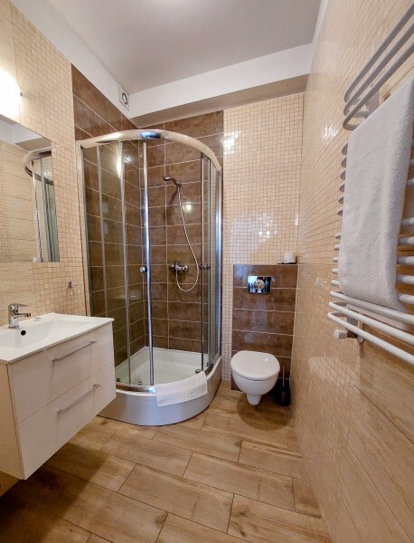 W każdym pokoju znajduje się łazienka z prysznicem.