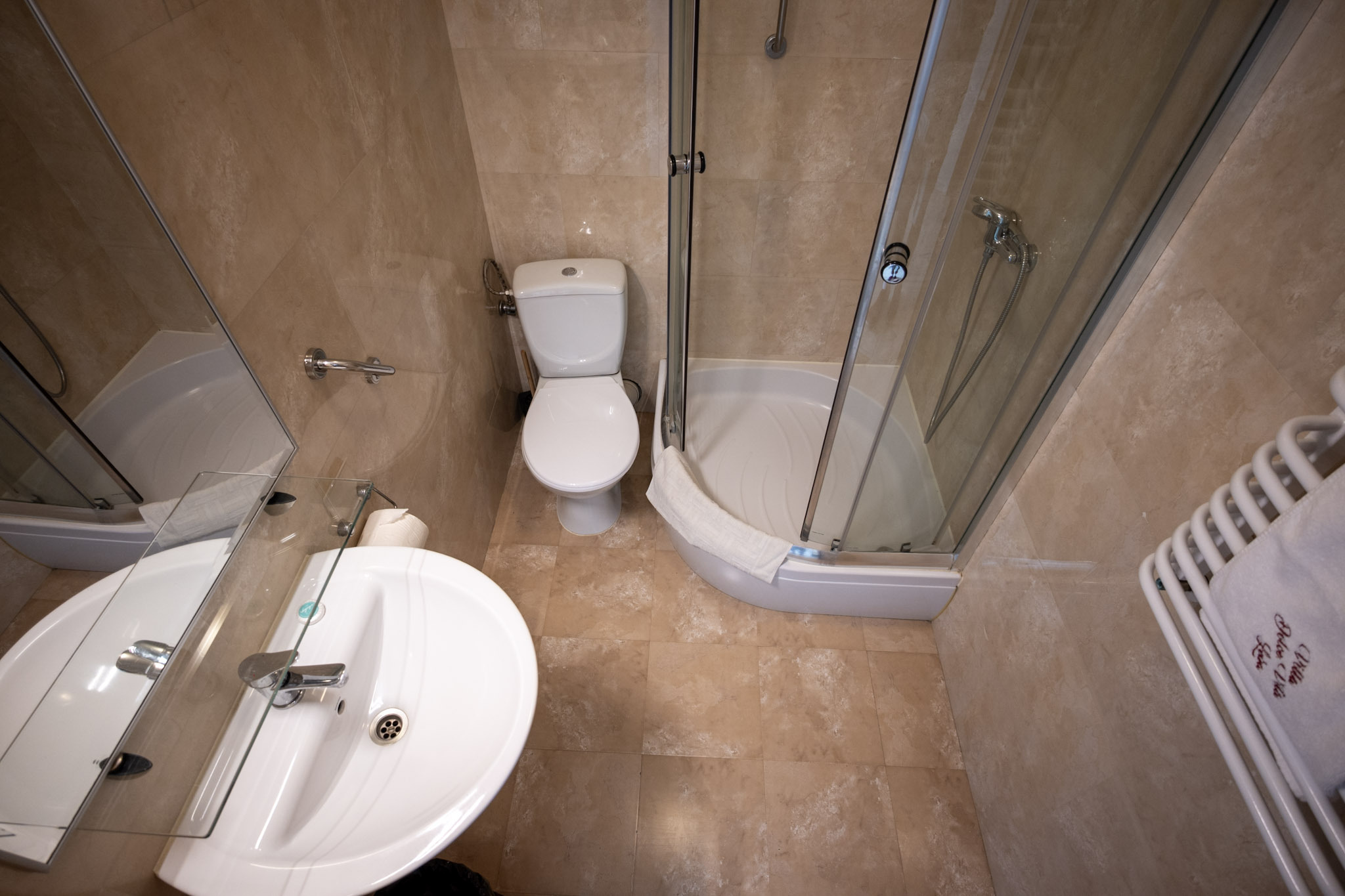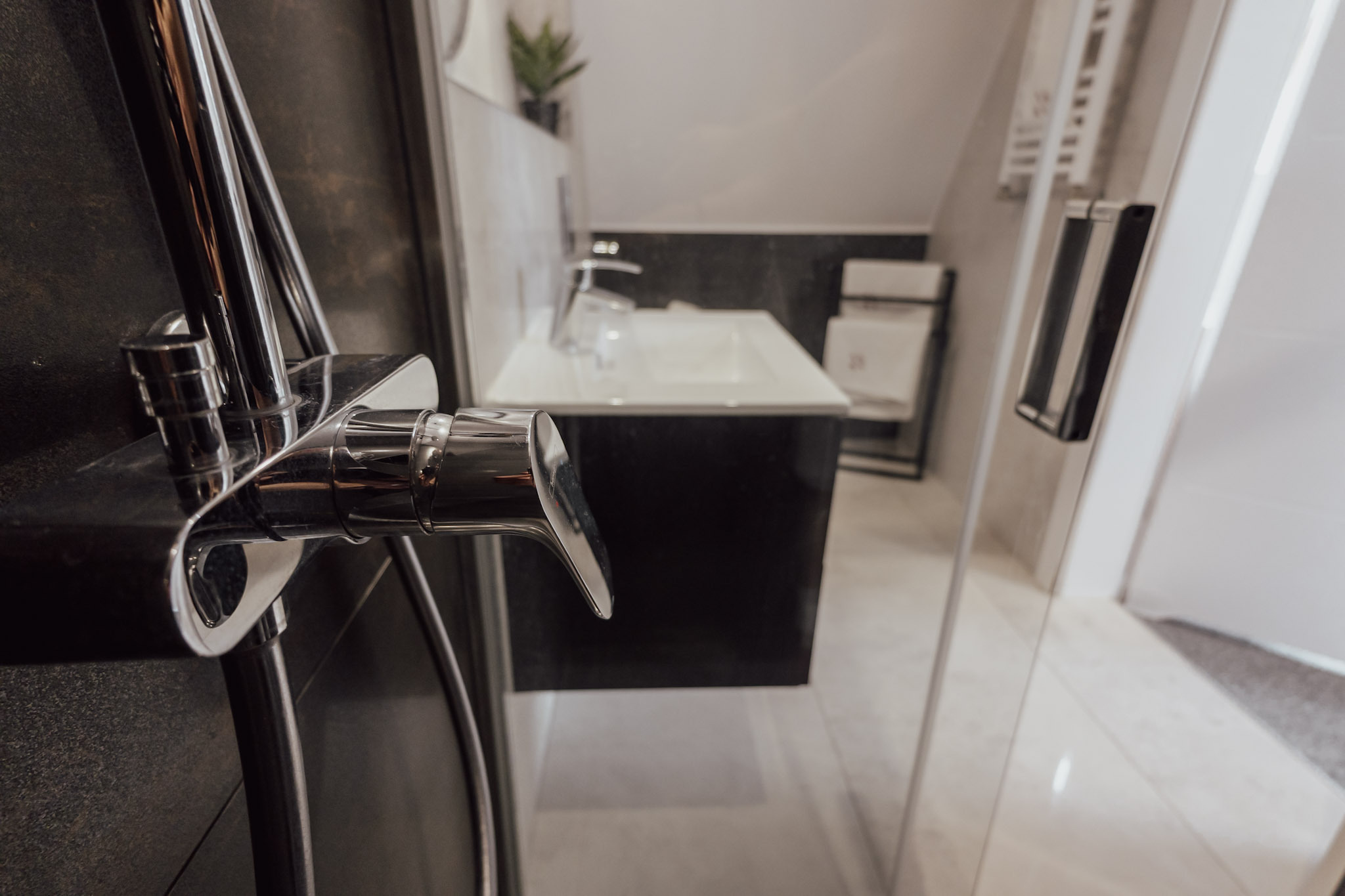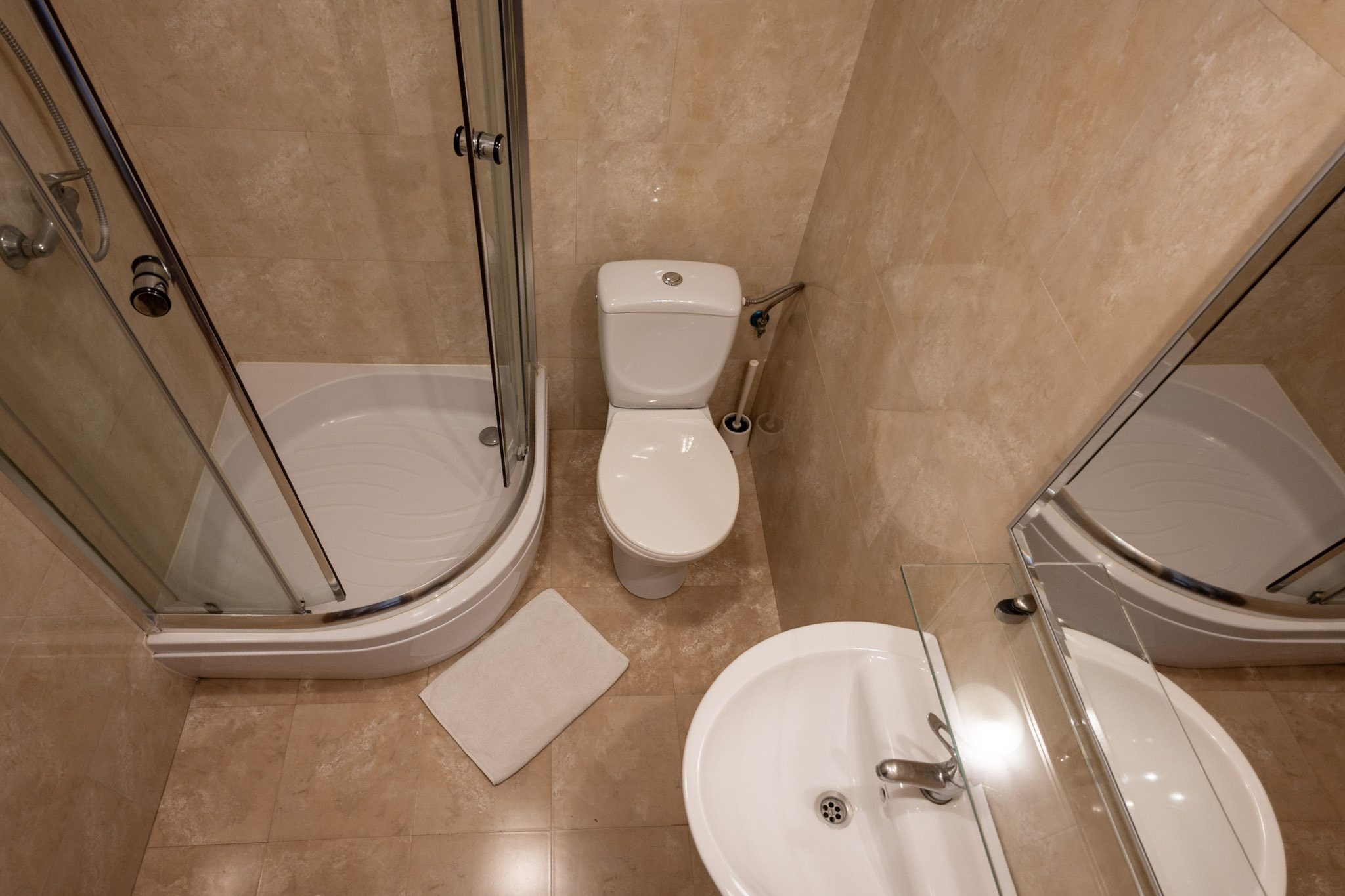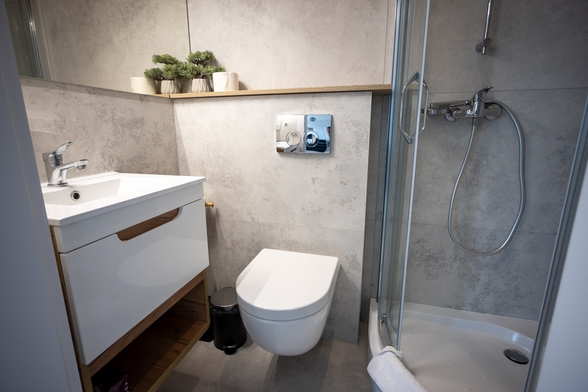 W każdym pokoju znajduje się łazienka z prysznicem.