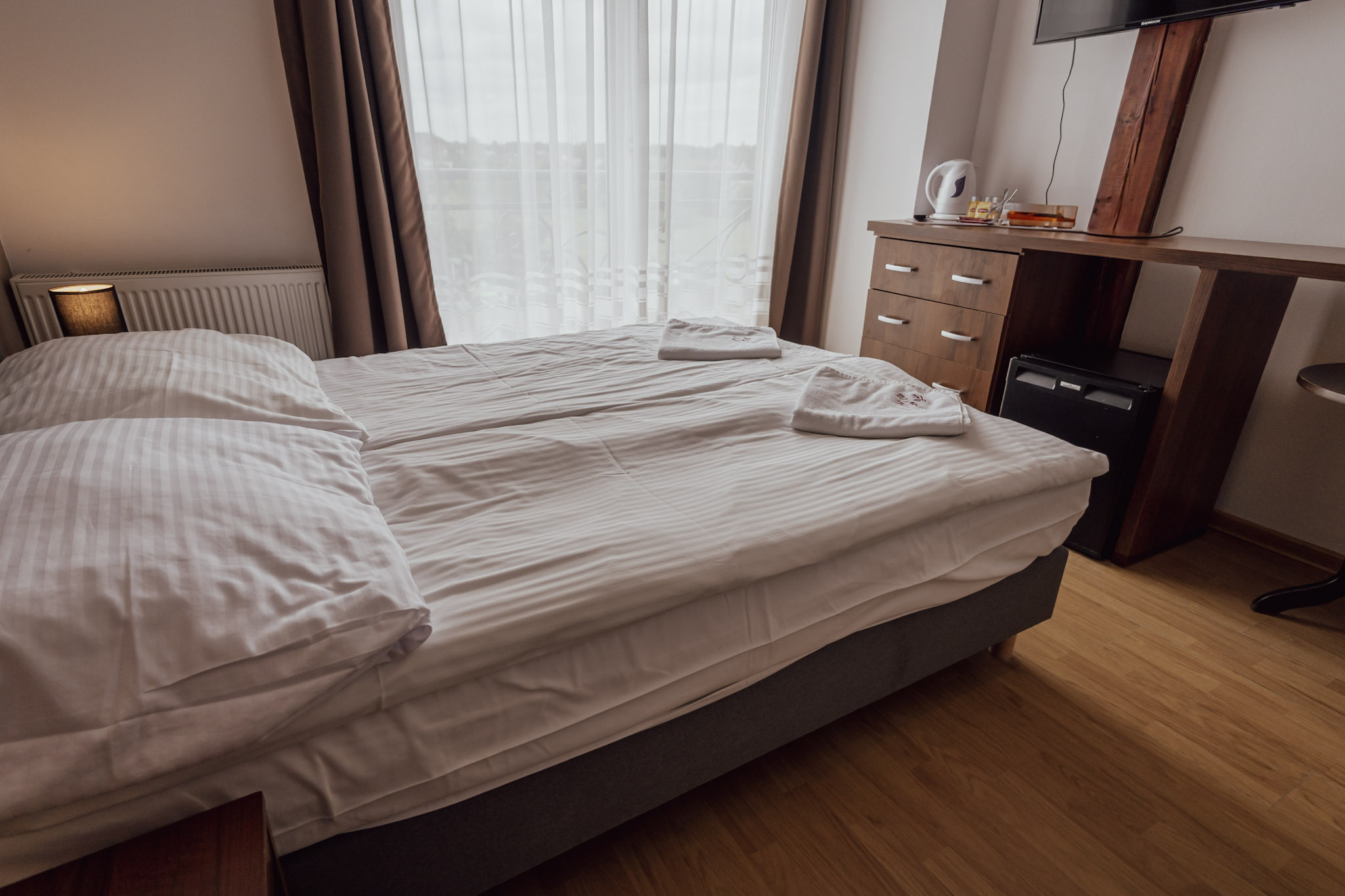 Pokoje dwuosobowe w większości posiadają łóżka małżeńskie.